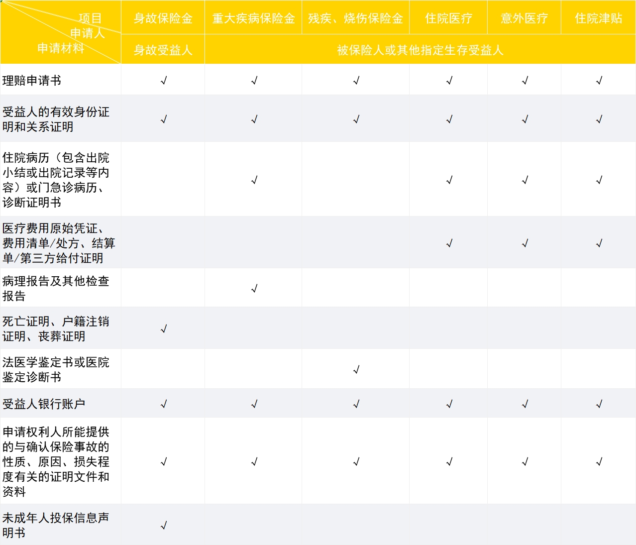 (1)由于保險(xiǎn)事故的具體情況不同及各地區(qū)差異,可能在辦理理賠業(yè)務(wù)時(shí)需提供一些其他輔助資料,如需其他材料理賠部門(mén)會(huì)及時(shí)與您取得聯(lián)系。